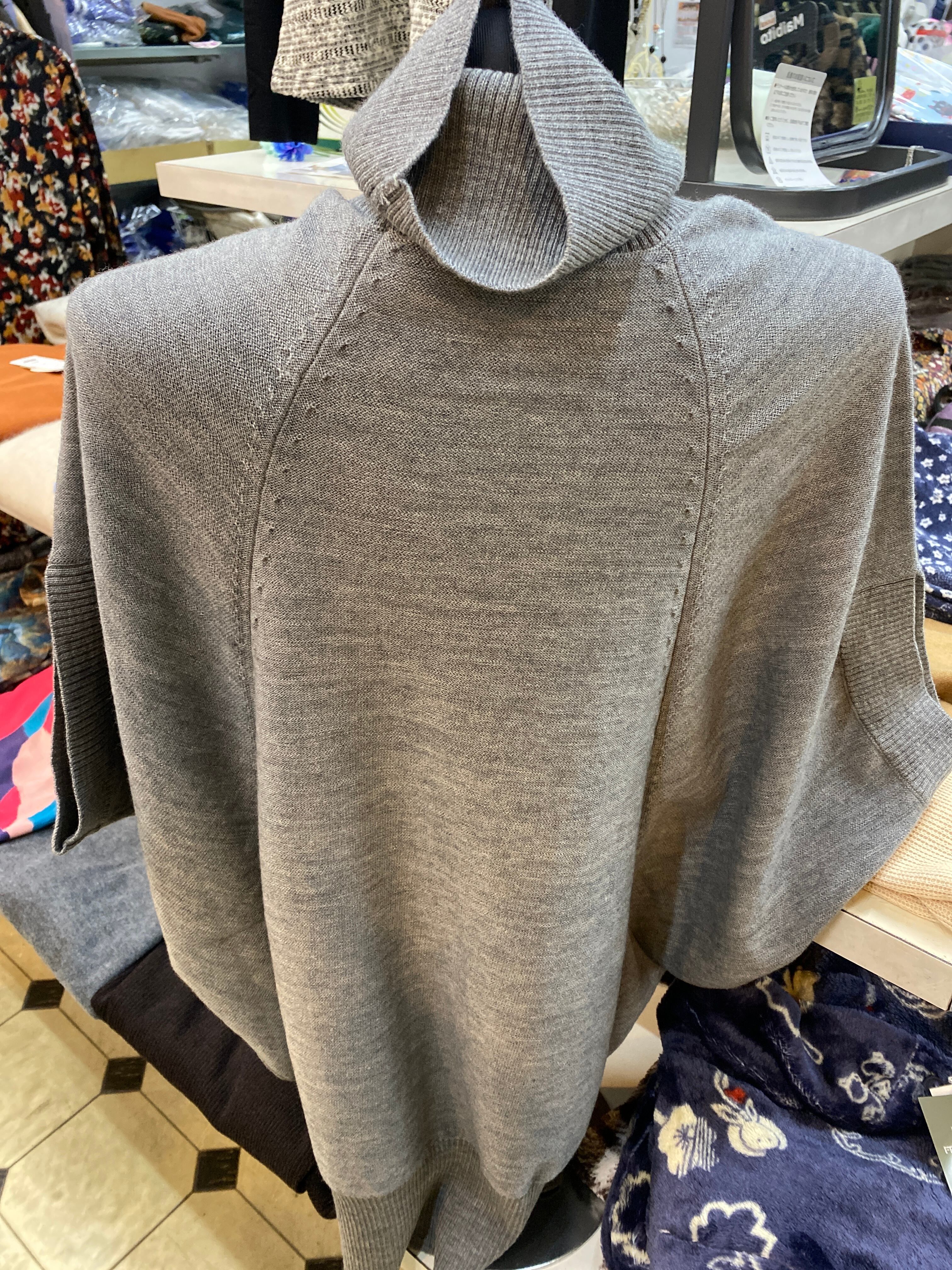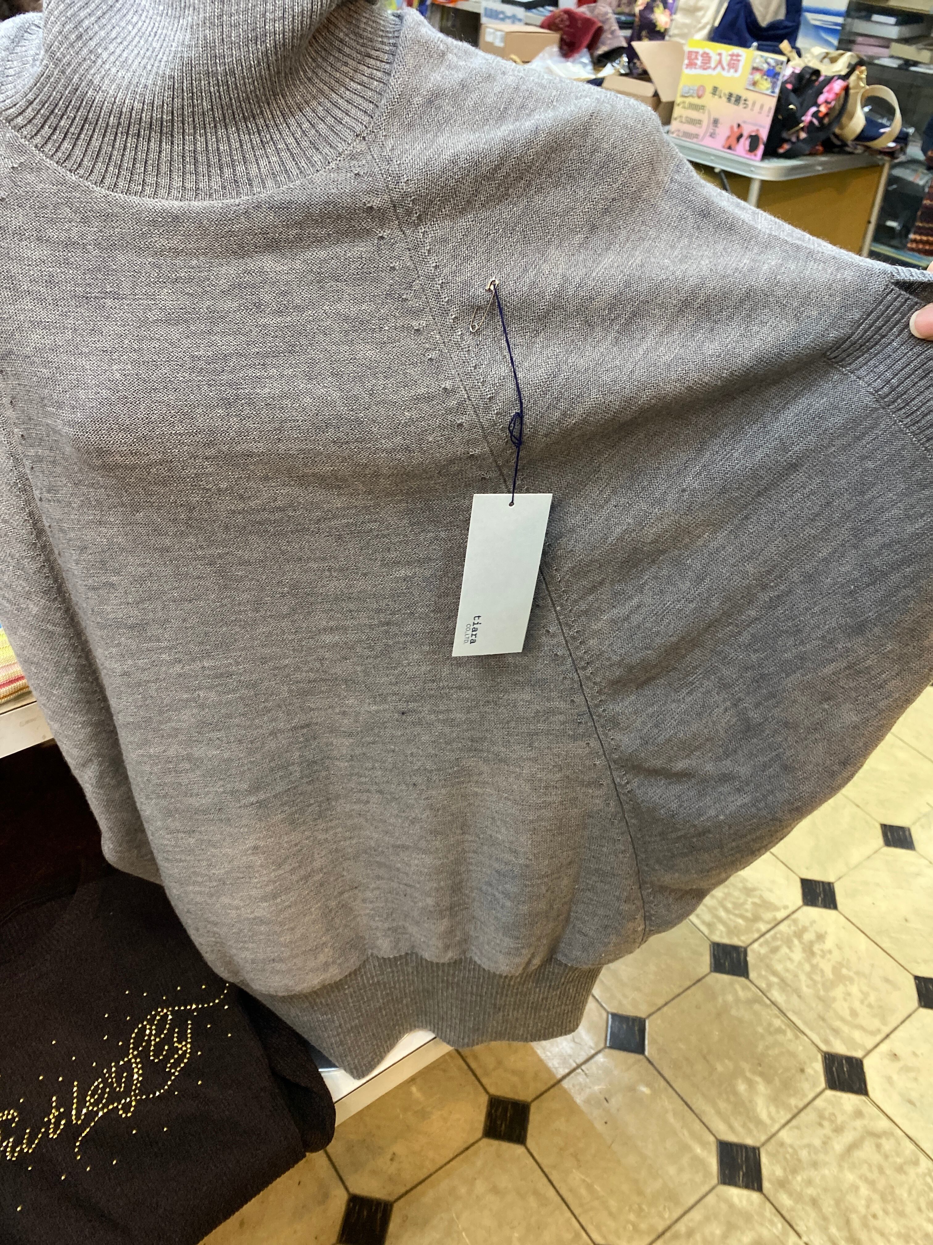 ティアラのタートルネックのドルマンニットです。どんなインナーでも合わせられます。グレーのニットベストです。ドルマンなのでどなたにでも合いやすく体型を隠すことができます!